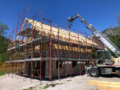 Trasportiamo le pareti prefabbricate, dotate di isolamento termico o telai già montati e chiusi da un lato, sul cantiere.